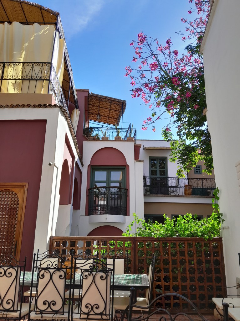 Back in Taroudant, and staying in a riad – a traditional kind of building with a courtyard in the centre (technically the term refers to just the courtyard). This one has an enormous tree growing in it, resplendent with pink flowers. The riad is full of traditional artwork and is quite possibly the nicest place I have ever stayed in. I had booked it in order to recover from the rigours of the desert at Targant Gorge, but as the bus to Akka didn’t turn up, now I’m just wallowing in the luxury of a place where they serve chocolate cake at breakfast.