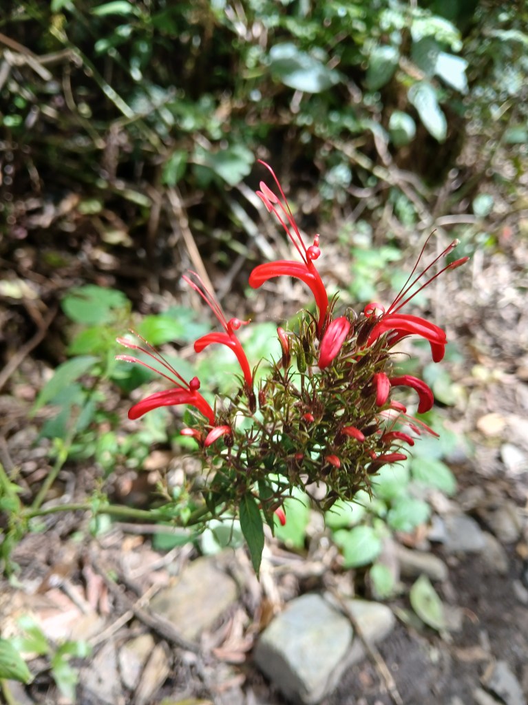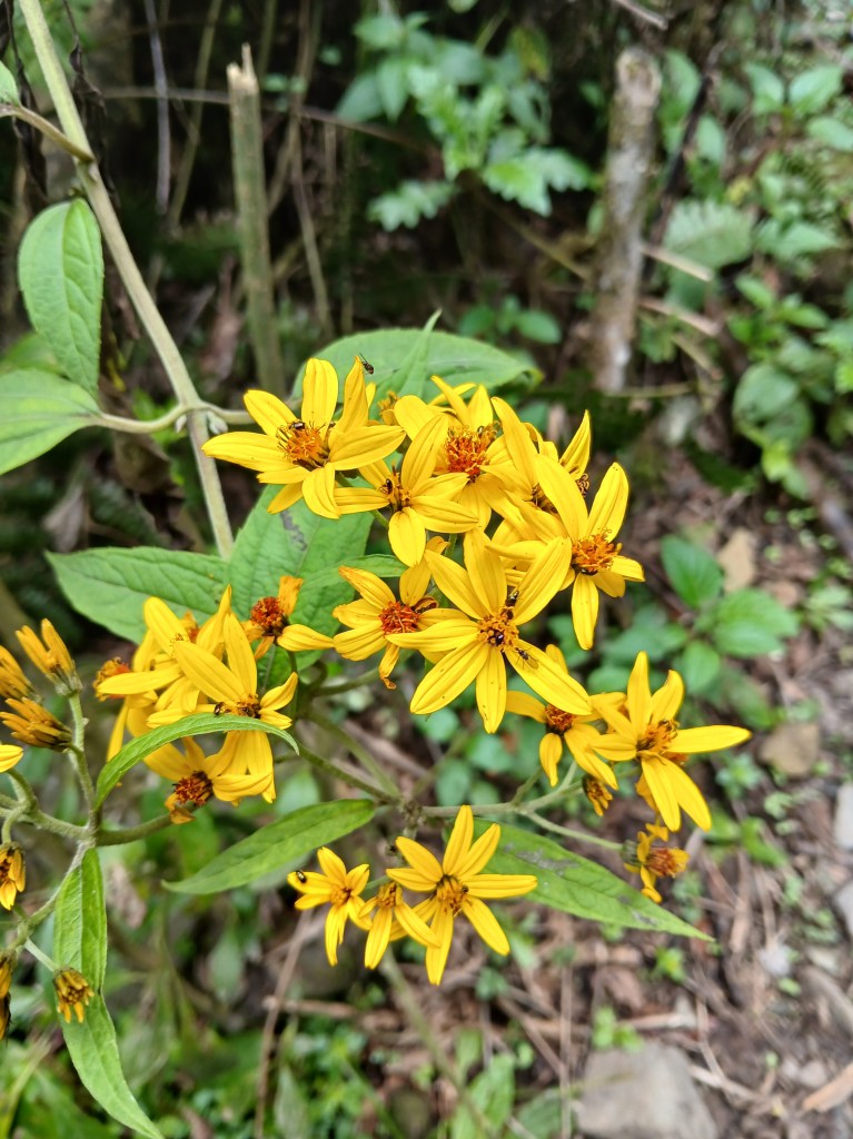 After walking past fields, I start ascending into the cloud forest. It resembles a cartoonist’s idea of a jungle, teeming with a multicoloured array of large flowers. But this is no jungle – a cloud forest is at higher altitude and thus, colder. No heat to sap my strength here, just altitude. Which, it turns out, is also very effective at reducing me to a gasping wreck.