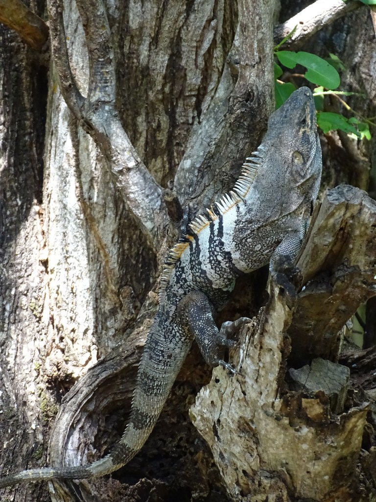 The half-hour is a struggle. The heat is still sapping my stamina at an alarming rate as I walk down the road out of town. Eventually I reach the mangrove, where large grey iguanas scuttle up trees as I stagger past. At least the shade of the trees and breeze off the water provide some respite here. Still, my phone keeps switching itself on in my sweat-sodden trouser pocket, so I put it in my shirt pocket before sitting down to rest on the boardwalk over the swamp. It doesn’t seem to help the exhaustion much. After a while, I get up, but as I approach a lagoon, I lean over to sit down again.