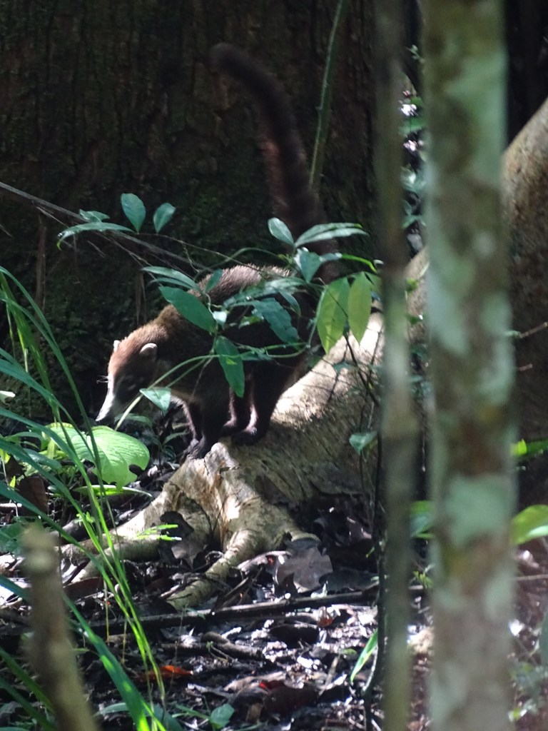 Untamed jungles are usually hard to reach, but I could get to Soberanía National Park with just a forty-minute taxi ride. As I understand it, it’s preserved because the forest is an important part of the neighbouring Panama Canal’s structural integrity. As I walk from the park headquarters along the main road, between tarmac and jungle, I pass a surprising amount of cars on the former, and parrots, a toucan, and a massive spider from the latter. I eventually turn off the road, out of the bright morning sunlight, and onto a trail into the murky forest. Coatis scatter at my approach, and watch me suspiciously from the safety of the undergrowth. There’s a booth marked “Police”, but it’s unoccupied.